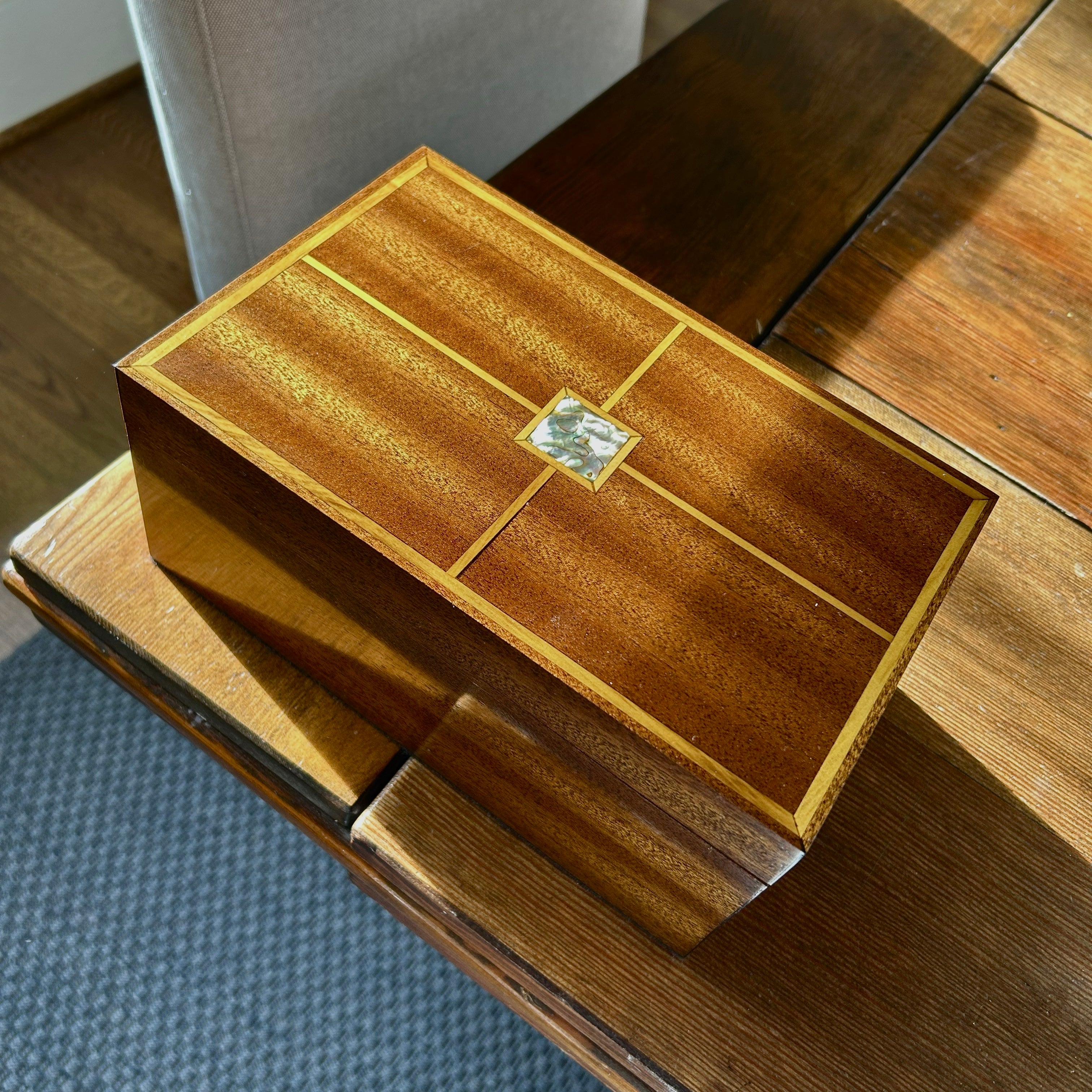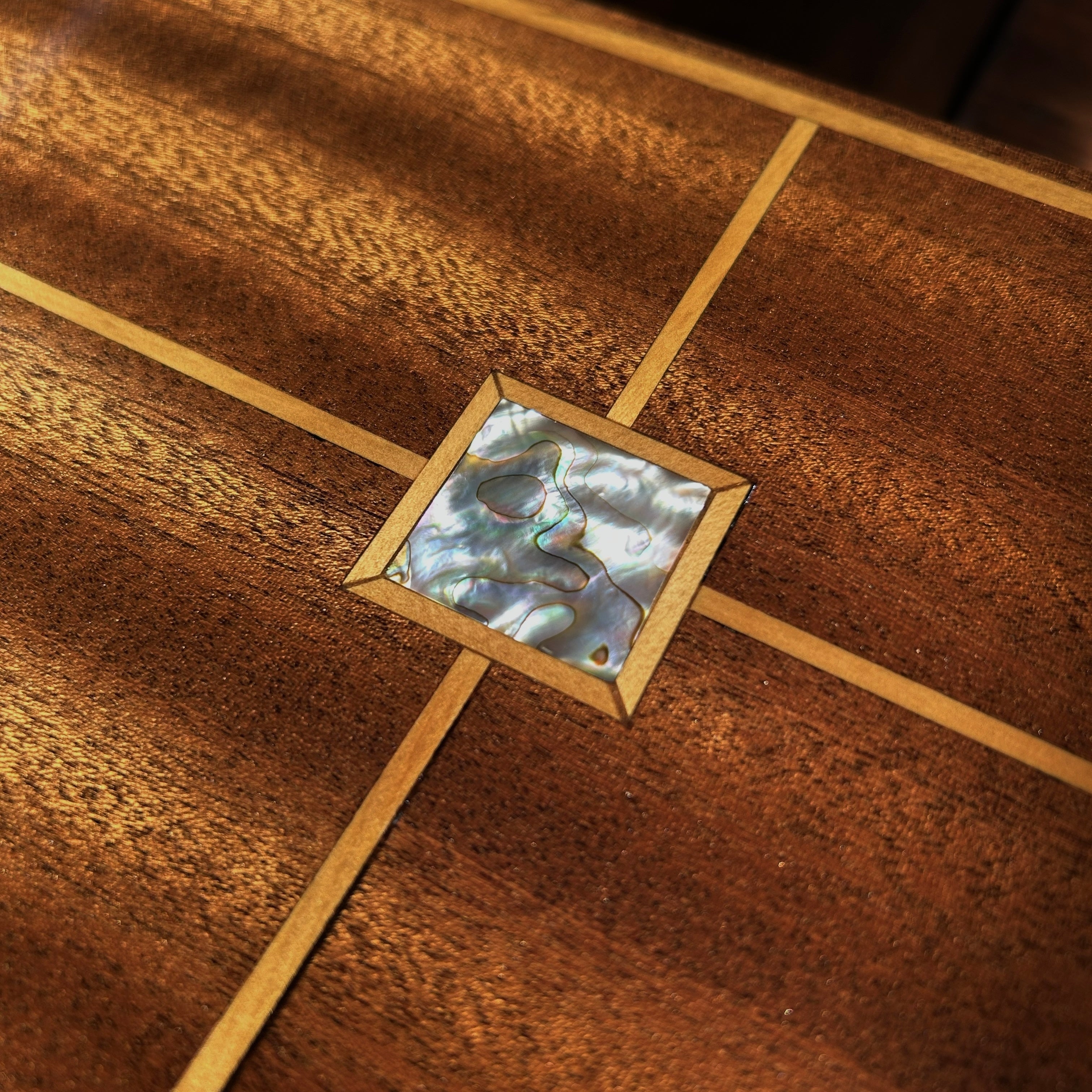 Prolonged exposure to sunlight—even through a window or fabric shade—can cause wood furniture and decorative objects to fade or change color over time. Fine wood subtly reflects its surroundings, and ultraviolet rays gradually break down the natural oils and pigments within the wood and finish—the same process that fades paintings, book covers, and fabrics. To preserve your piece’s rich character, keep it out of direct sunlight or use UV-filtering glass.