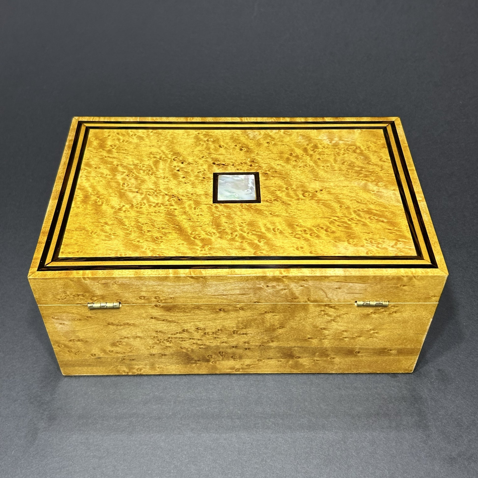 With quartersawn wenge and mother-of-pearl shell inlay.