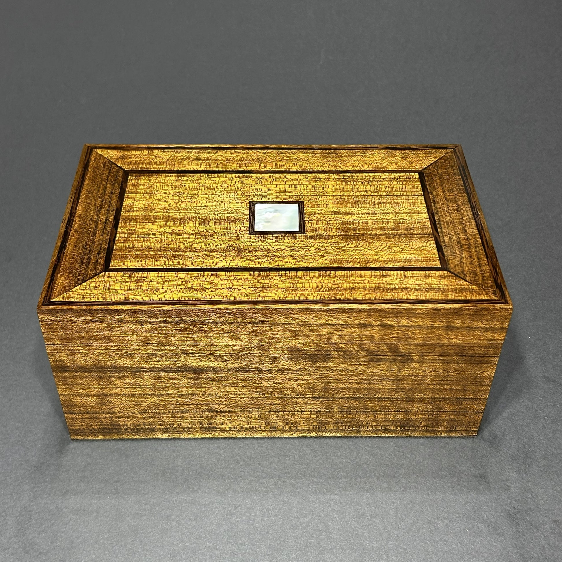 With quartersawn wenge and mother-of-pearl shell inlay.