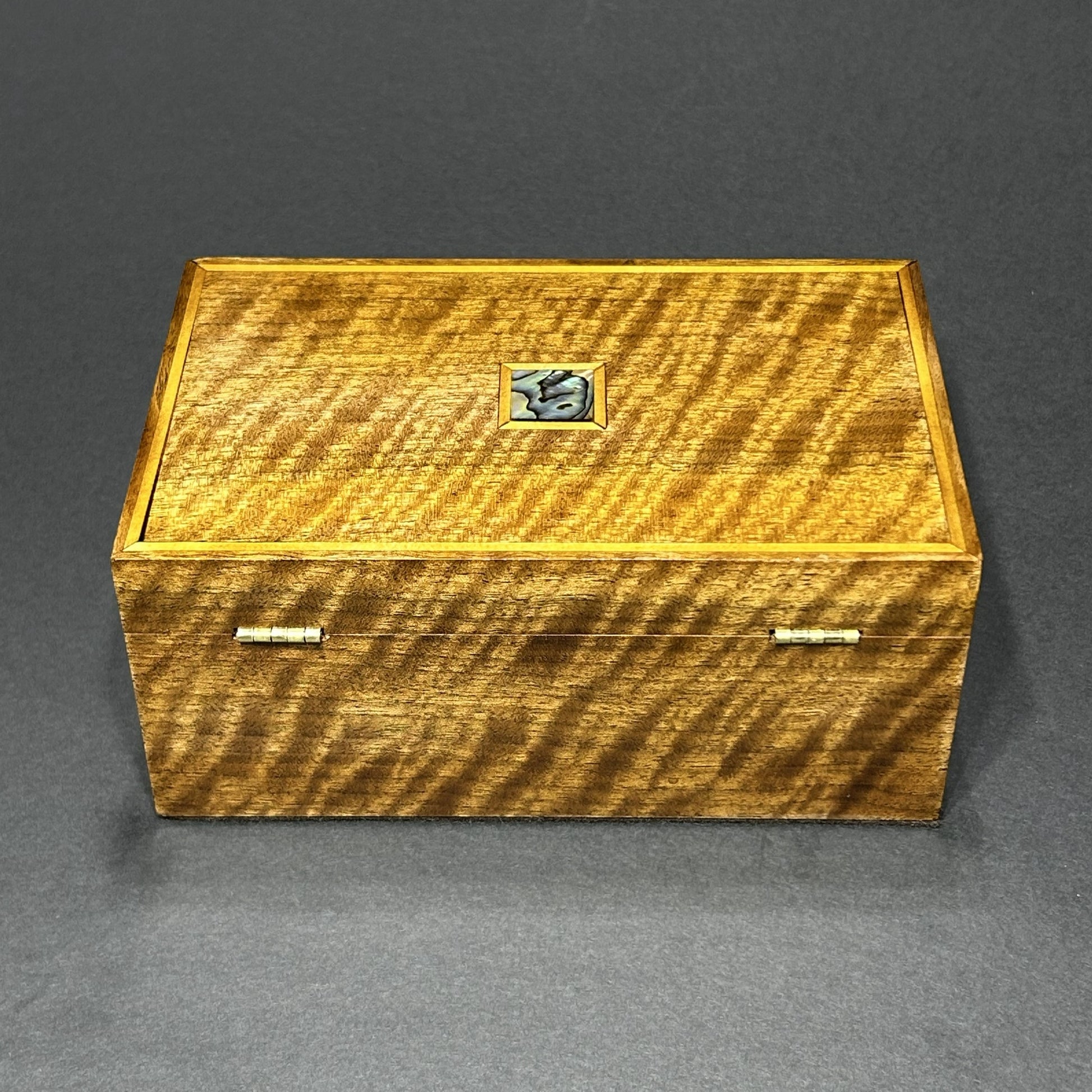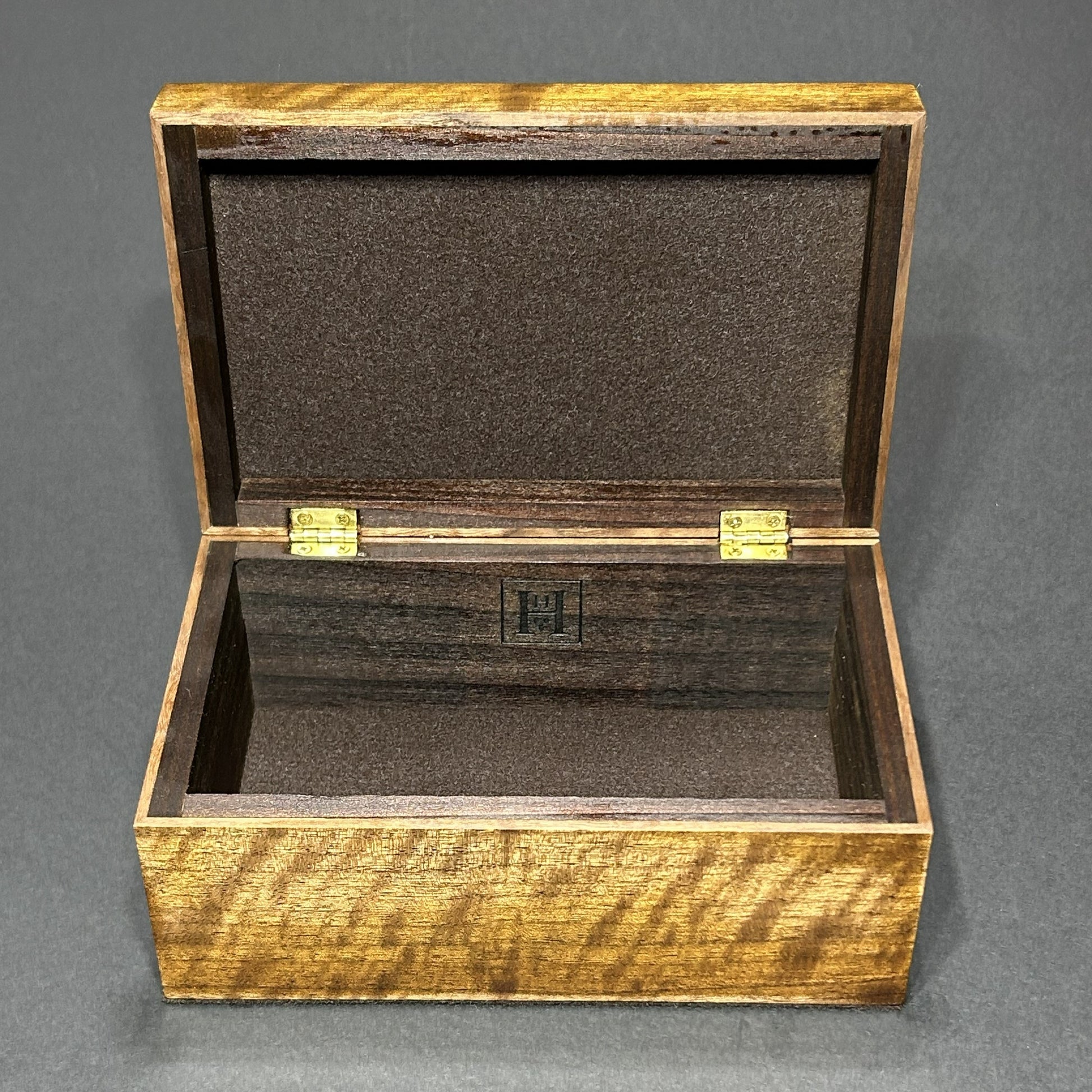 A rare form of American walnut, flamed black walnut displays rippling, flame-like patterns formed by natural stress in the tree. Prized by instrument makers, it reflects light with a rich, three-dimensional glow.