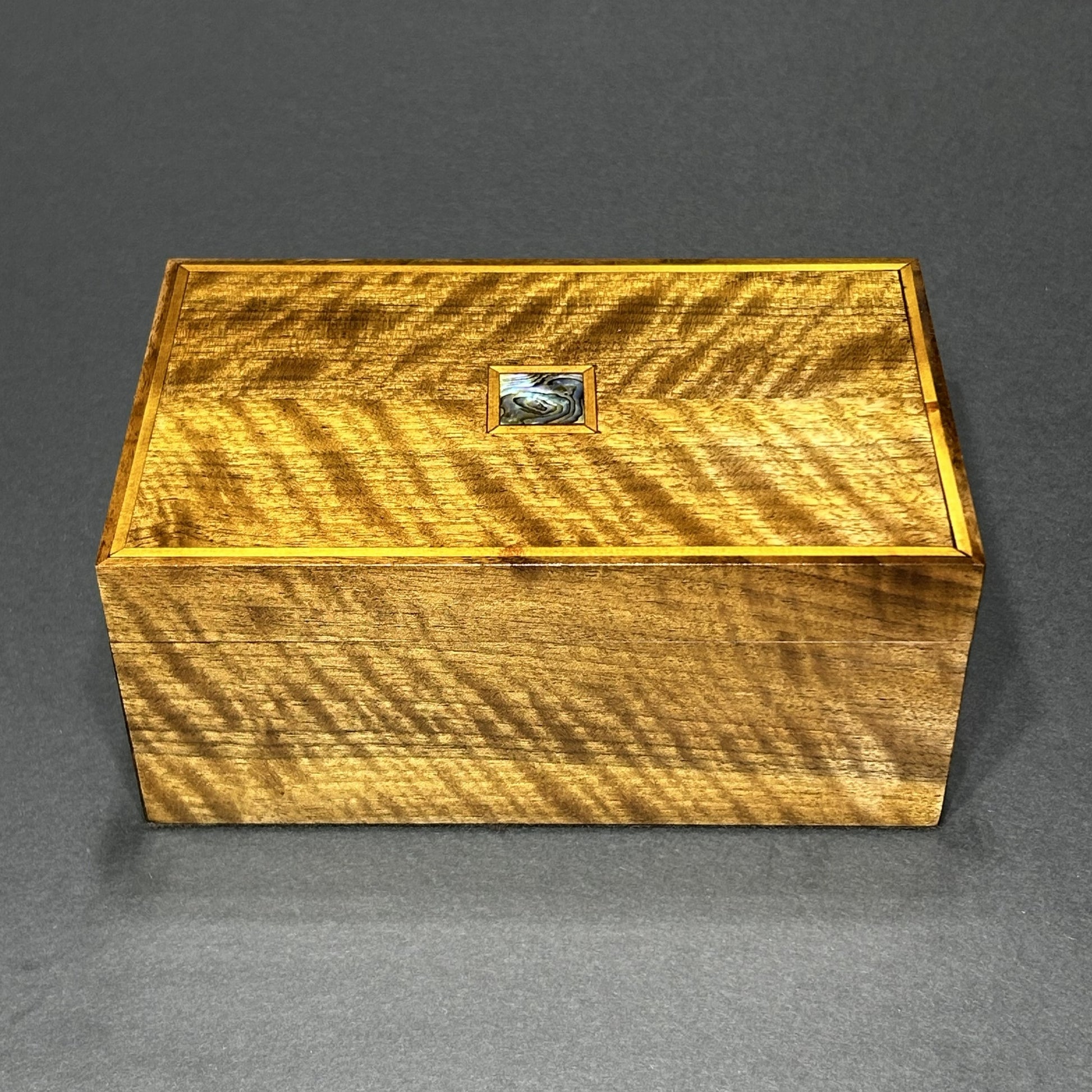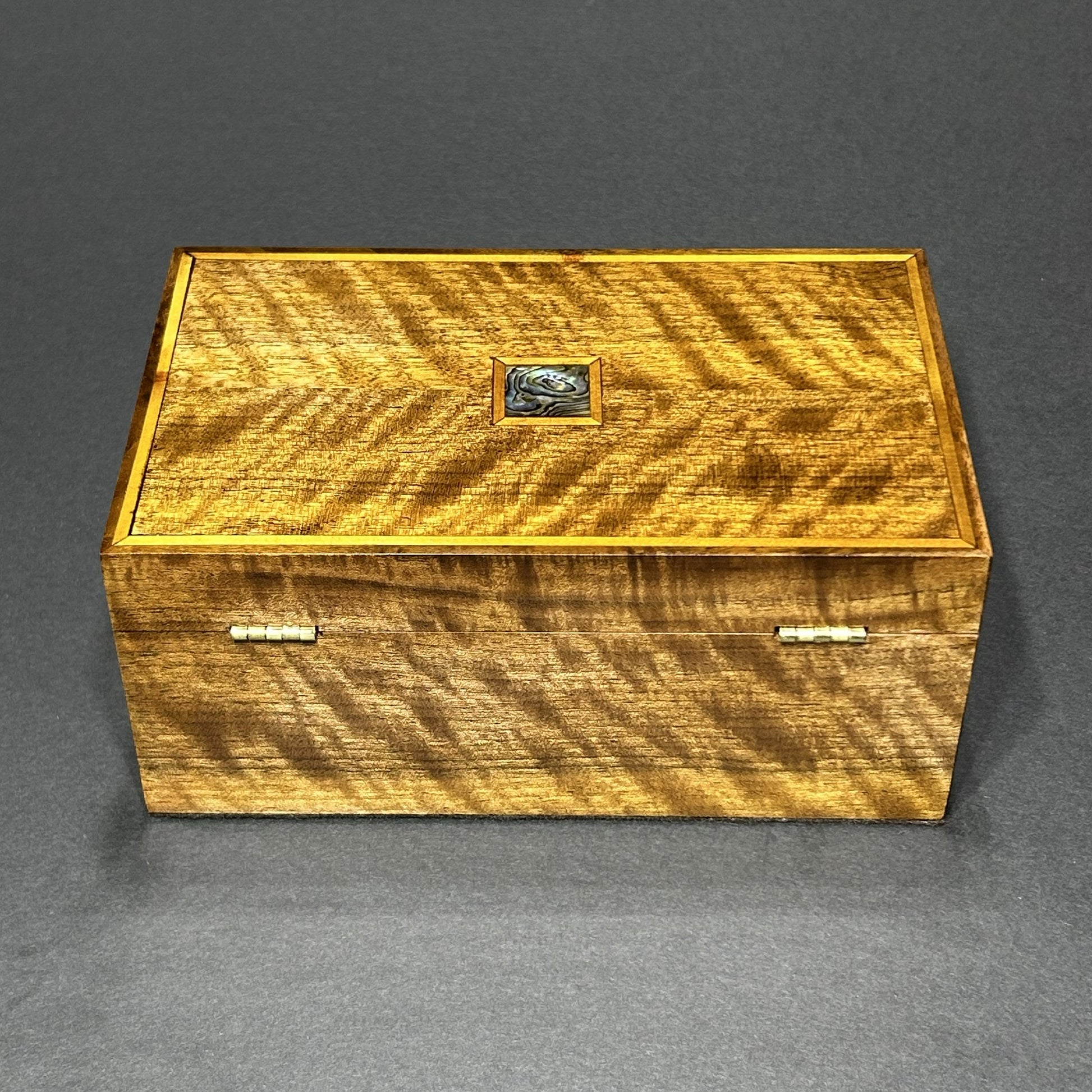 A rare form of American walnut, flamed black walnut displays rippling, flame-like patterns formed by natural stress in the tree. Prized by instrument makers, it reflects light with a rich, three-dimensional glow.